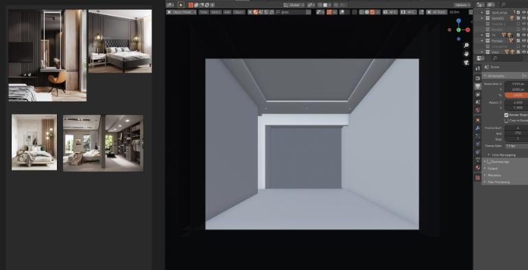 一如既往,打开Blender前,我的第一步是收集一些我将要制作的环境照片。针对这个具体项目,我从Pinterest、Houzz和Google收集了一些主卧室的图片,并用一个很酷且免费的应用PureRef制作了一个情绪板,我推荐给所有想要将所有想法存储在无限画布中的艺术家。