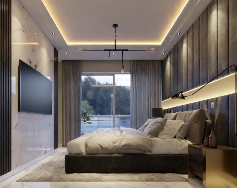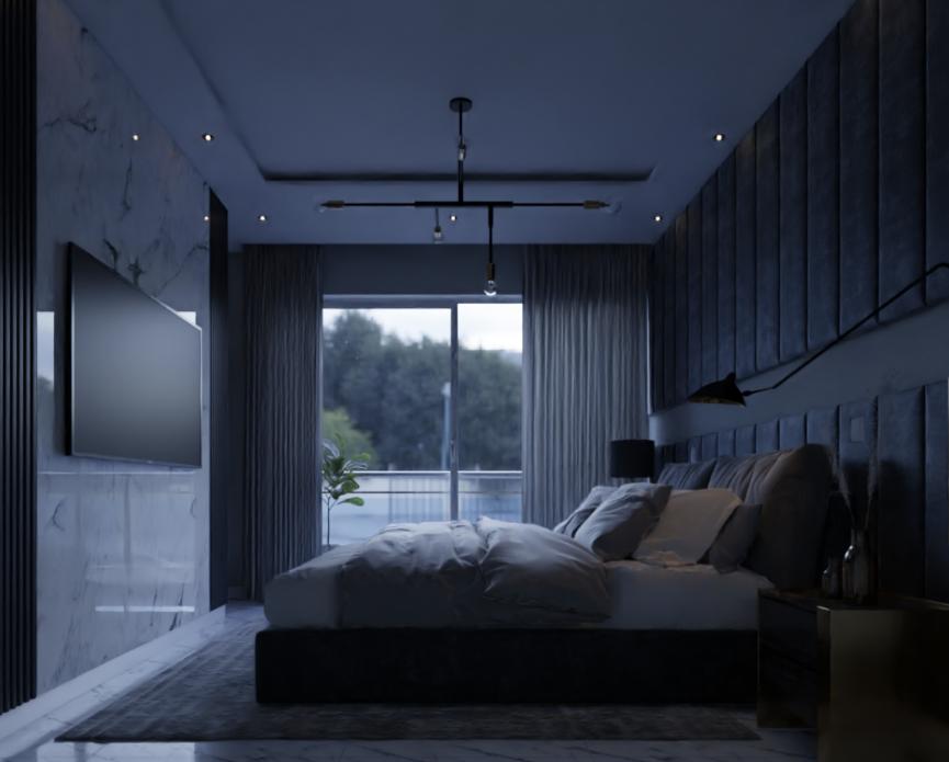 在人工照明方面,我用了一些IES光线纹理、聚光灯和区域光来模拟LED灯条。我决定关闭吊灯,以避免过多的“闪耀”信息,也避免破坏我想要营造的氛围。知道这是酒店房间,我想把那种温馨的感觉带进去。不得不说,客户非常喜欢。